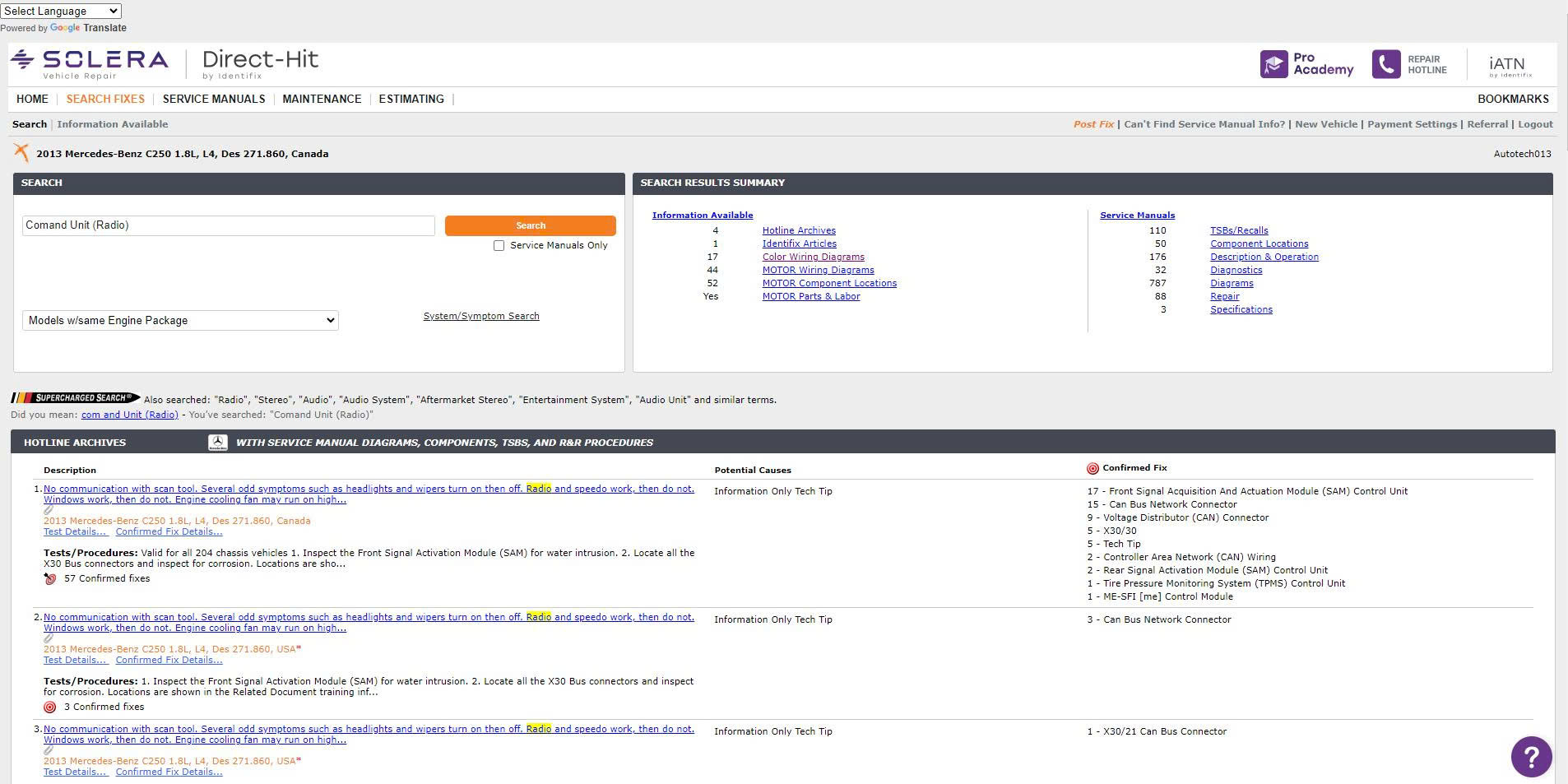Fast and accurate search by fault code, symptom, vehicle make, model and year